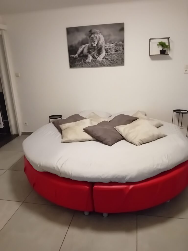 – Deuxième chambre avec lit rond et salle de bain privée, disponible sur réservation à partir de 3 personnes